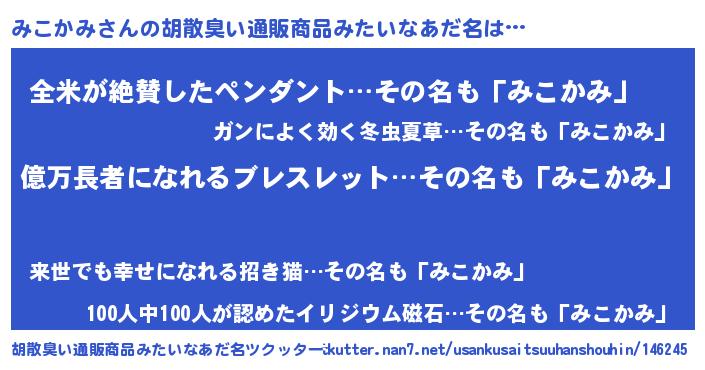 | 男性向けラノベタイトル風あだ名 | 『みこかみ~年齢イコール彼女いない歴の魔法使い~』 |