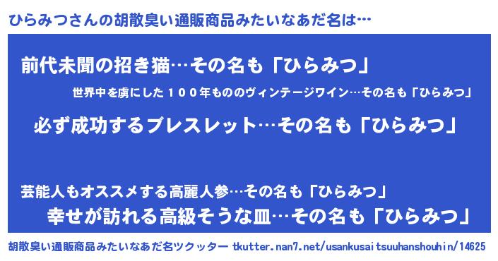 | 肩書あだ名 | 『ひらみつCEO』『ひらみつ中佐』 |