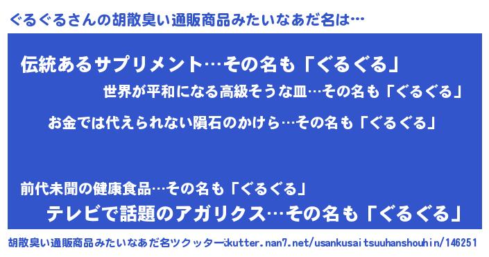 | 男性向けラノベタイトル風あだ名 | 『転生したらぐるぐるだった件』 |