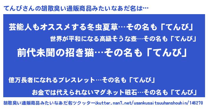 | 意味不明あだ名 | 『永久保存てんび』『自称てんび』 |