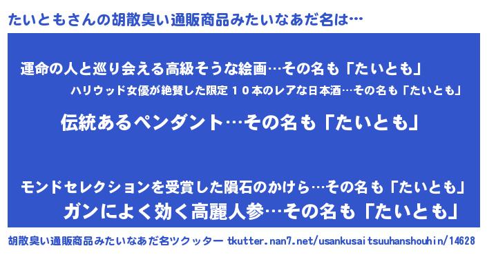 | 意味不明あだ名 | 『とにかく怪しいたいとも』 |