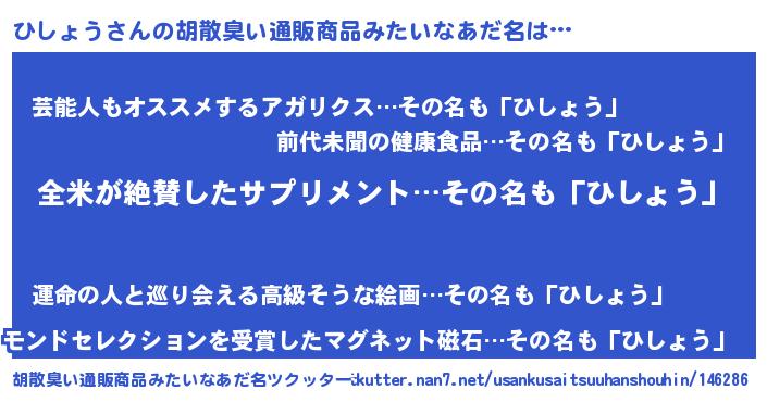 | 意味不明あだ名 | 『とにかく怪しいひしょう』 |