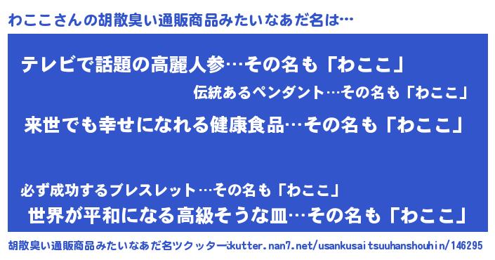 | 意味不明あだ名 | 『永久保存わここ』『自称わここ』 |