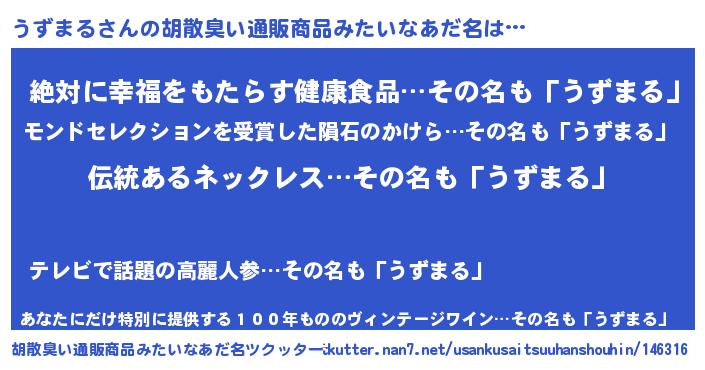 | ヘコむあだ名 | 『うずっ子』『うずまる(笑)』 |