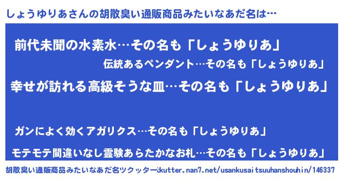 | 意味不明あだ名 | 『しょうゆりあフォーエバー』 |