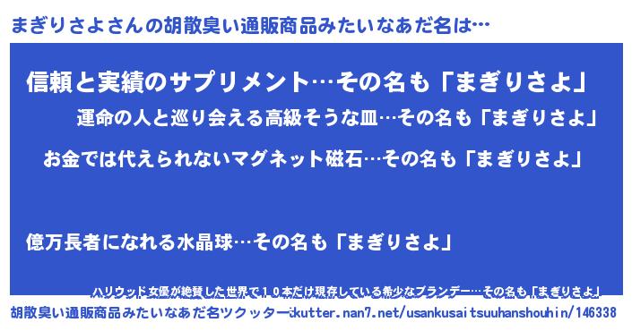 | ヘコむあだ名 | 『まぎを』『つくし』『まぎにー』 |