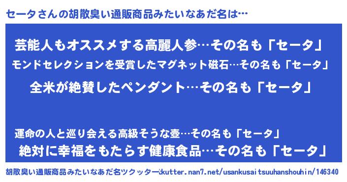 | 意味不明あだ名 | 『とにかく怪しいセータ』『自称セータ』 |