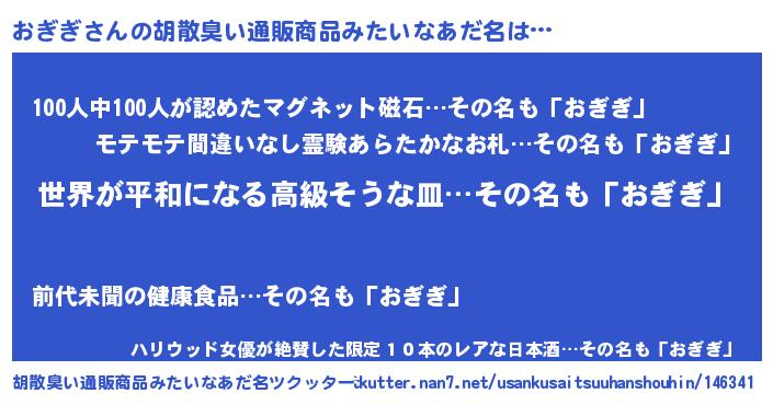 | ヘコむあだ名 | 『なまこ酢』『おぎにー』 |