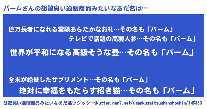 | 男性向けラノベタイトル風あだ名 | 『やはりバームの青春ラブコメはまちがっている 』 |
