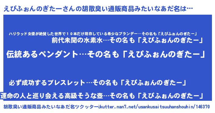 | 男性向けラノベタイトル風あだ名 | 『えぴふぉんのぎたーの嫁は女の子じゃないと思った?』 |