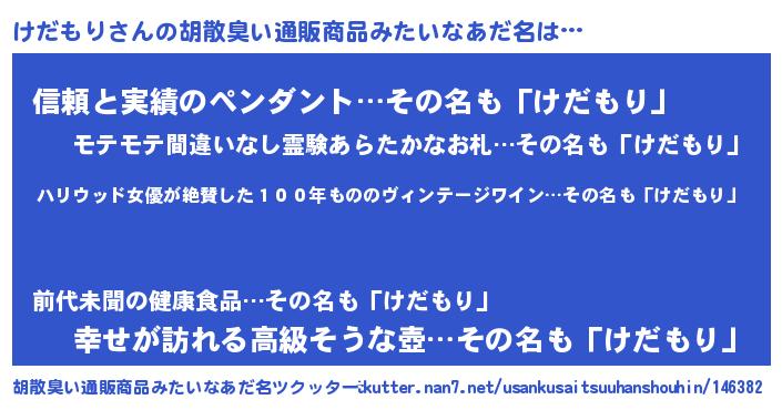| 意味不明あだ名 | 『住所不定無職けだもり(13歳)』 |