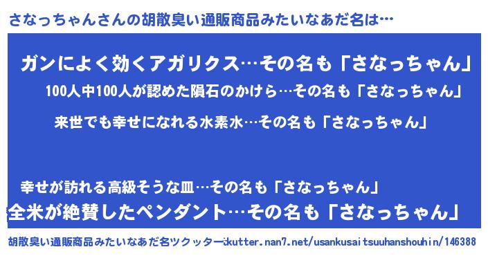 | 意味不明あだ名 | 『永久保存さなっちゃん』 |