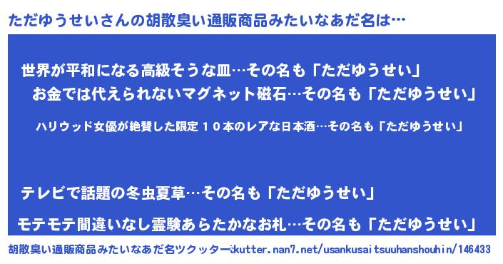 | 欧米人風あだ名 | 『ダレノガレただゆうせい』 |