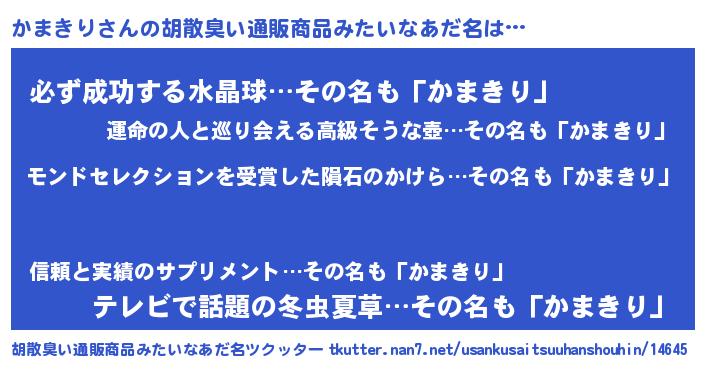 | ヘコむあだ名 | 『かまっふぃ~』『つくし』 |