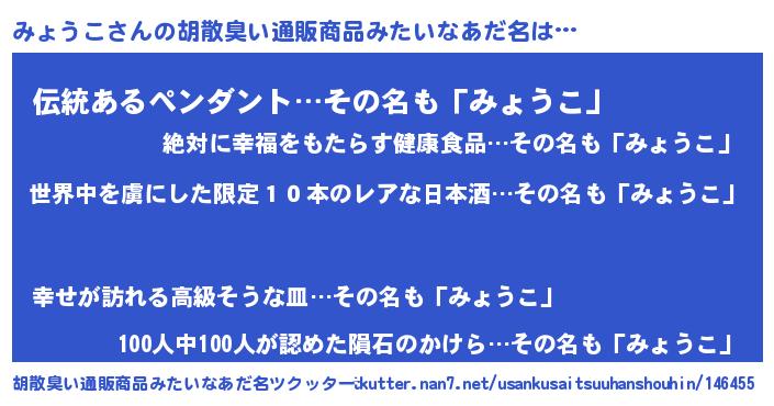 | ヘコむあだ名 | 『みょっ子』『みょうこ(笑)』 |