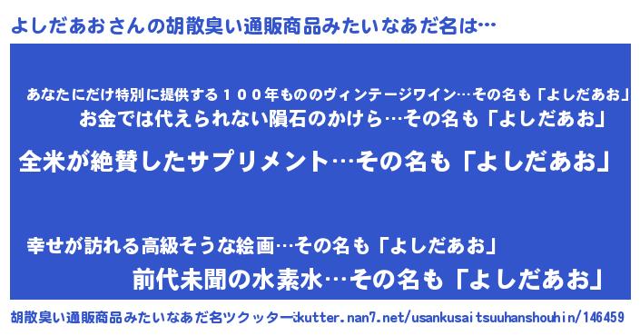 | ヘコむあだ名 | 『よしお』『よしだあお(遠い目)』 |