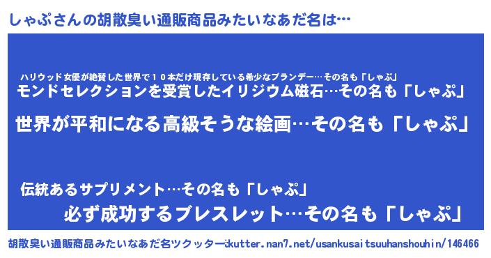 しゃぷさんの胡散臭い通販商品みたいなあだ名をツクッター!