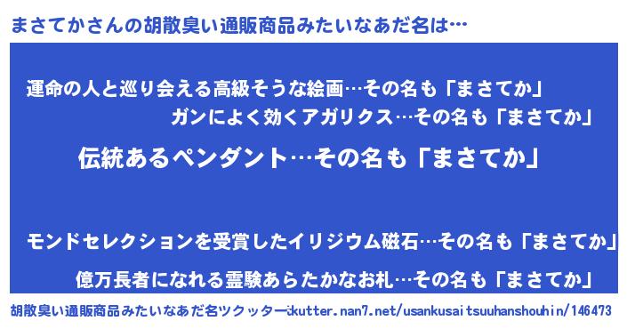 | 意味不明あだ名 | 『とにかく怪しいまさてか』 |