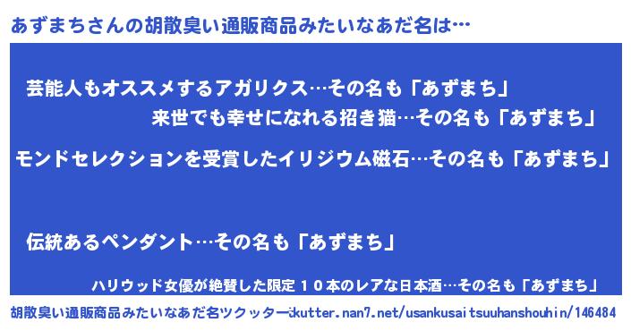 | 女子向けラノベタイトル風あだ名 | 『死神あずまちの再婚』『闇のあずまち』 |