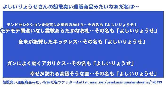 | 意味不明あだ名 | 『とにかく怪しいよしいりょうせ』 |