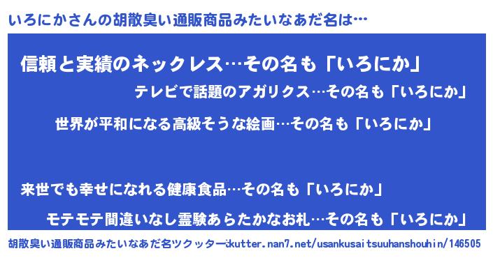 | 肩書あだ名 | 『いろにか総理大臣』『いろにか班長』 |