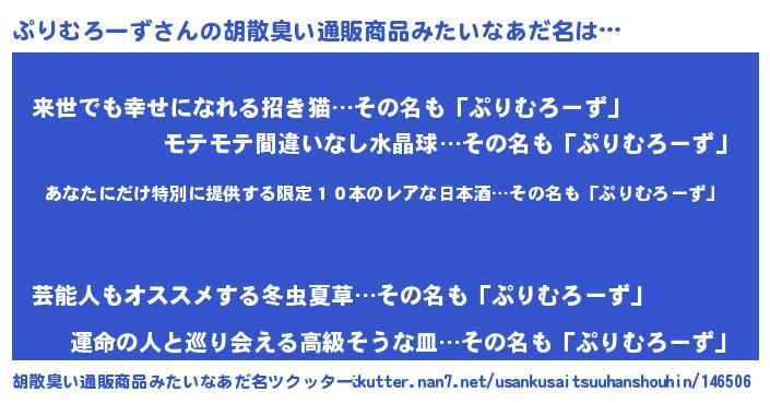| 男性向けラノベタイトル風あだ名 | 『この素晴らしい世界にぷりむろーずを!』 |