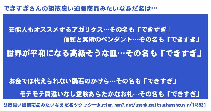 | ヘコむあだ名 | 『なまこ酢』『できもー』 |