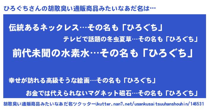| ヘコむあだ名 | 『ひろぐち(遠い目)』『ひろっ子』 |