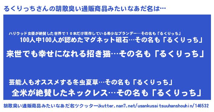 | ヘコむあだ名 | 『るくりっち(笑)』『るくっちょ』 |