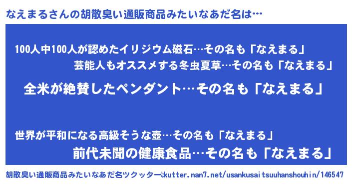 | 意味不明あだ名 | 『とにかく怪しいなえまる』 |