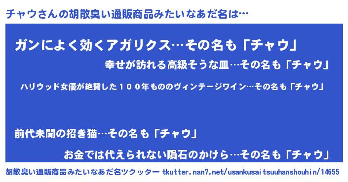 | 恥ずかしいあだ名 | 『チャウデラックス』『チャっちょ』 |