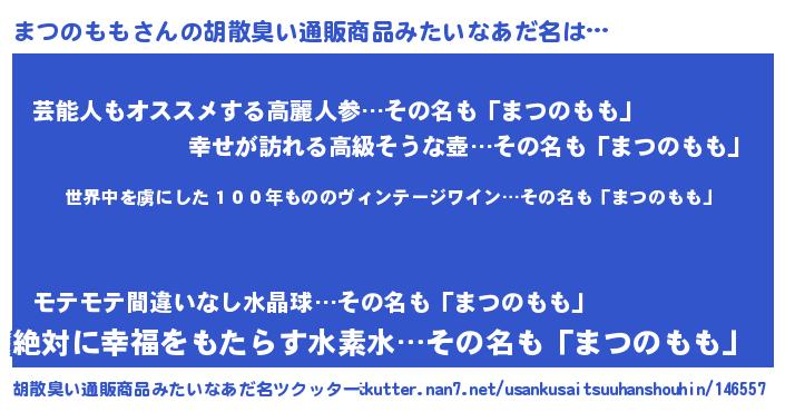 | ヘコむあだ名 | 『まつのもも(小並感)』『レバニラ』 |