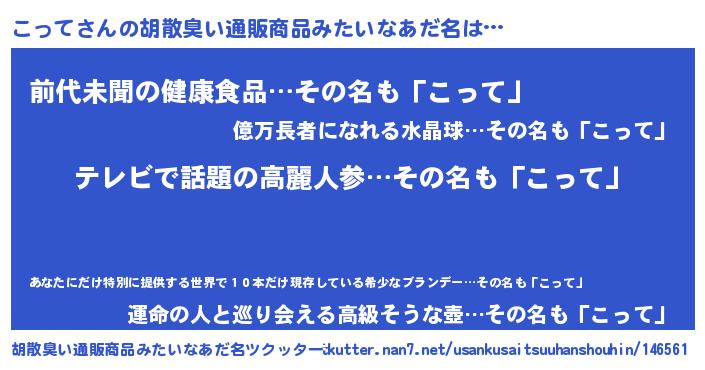 | 意味不明あだ名 | 『自称こって』『永久保存こって』 |