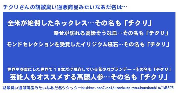| ヘコむあだ名 | 『チクっ子』『酢こんぶ』『チクもー』 |