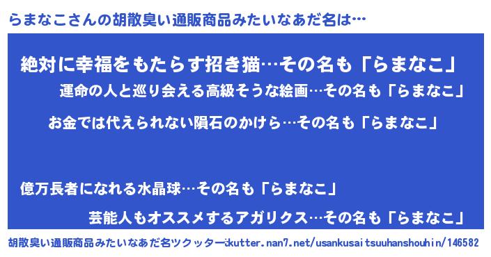 | ヒーロー風カッコイイあだ名 | 『愛の使者らまなこ』『ネオラマナコ』 |
