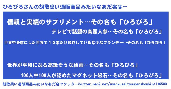 | 意味不明あだ名 | 『住所不定無職ひろびろ(86歳)』 |