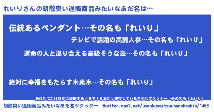 | ヘコむあだ名 | 『レバニラ』『れいを』『れいり(笑)』 |