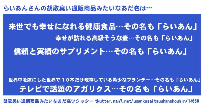 | ピコ太郎風あだ名 | 『ライ次郎』『ピコラ郎』『ピラ二郎』 |