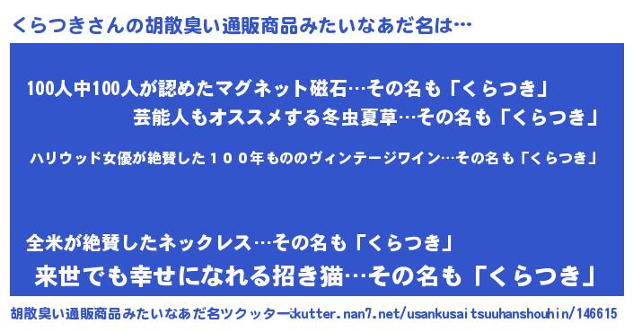 | ヘコむあだ名 | 『くらつき(小並感)』『くらを』 |