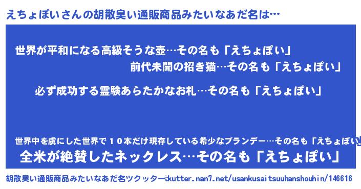 | 番長 | えちょぽい、またの名を・・・!『なんちゃってえちょぽいさん』 |