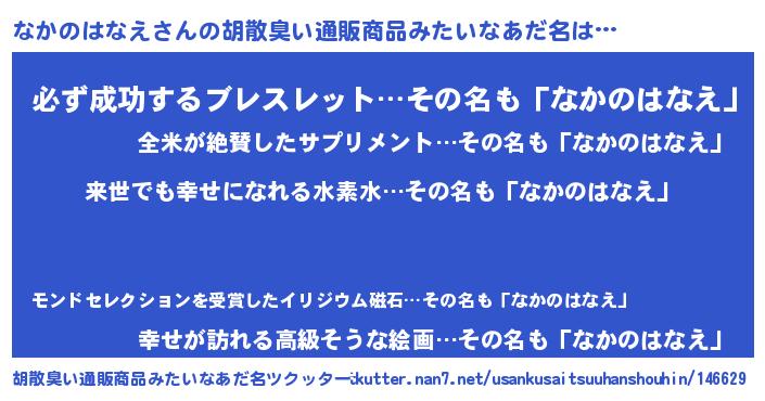 | 男性向けラノベタイトル風あだ名 | 『なかのはなえという概念が存在しない退屈な世界 』 |