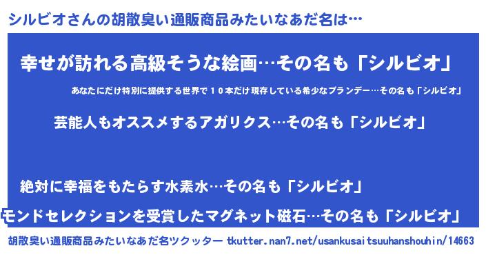 | 意味不明あだ名 | 『自称シルビオ』『シルビオフォーエバー』 |