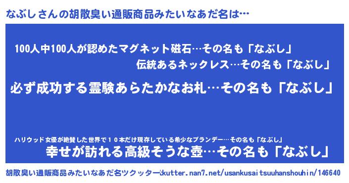 | 男性向けラノベタイトル風あだ名 | 『なぶしの憂鬱』『緋弾のナブシ』 |