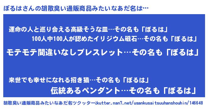 | 男性向けラノベタイトル風あだ名 | 『ボルハアートオンライン』 |