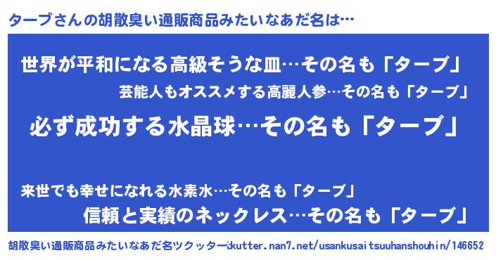 | ヒーロー風カッコイイあだ名 | 『スーパーターブ』『ウルトラターブマン』 |