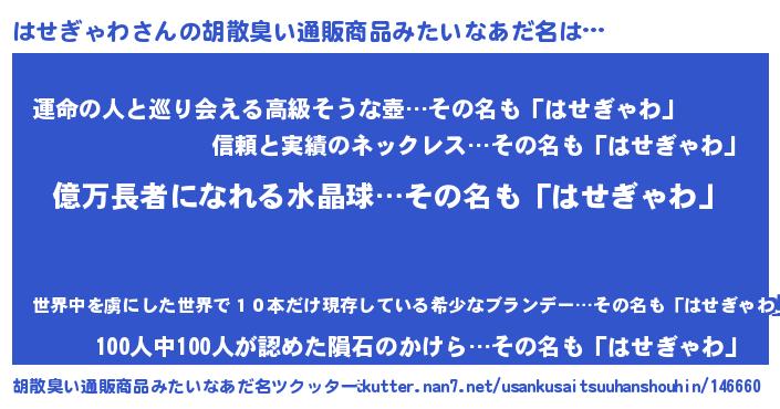| 男性向けラノベタイトル風あだ名 | 『ハセギャワアートオンライン』 |