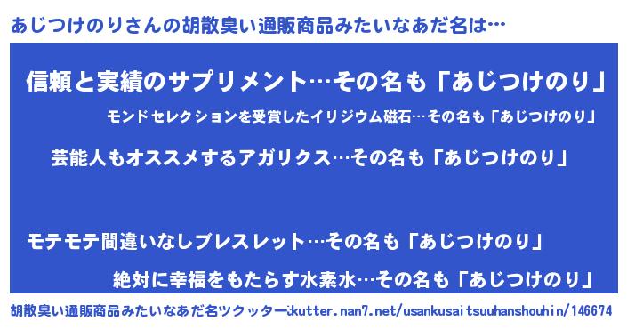 | ヘコむあだ名 | 『あじっ子』『あじつけのり(笑)』 |