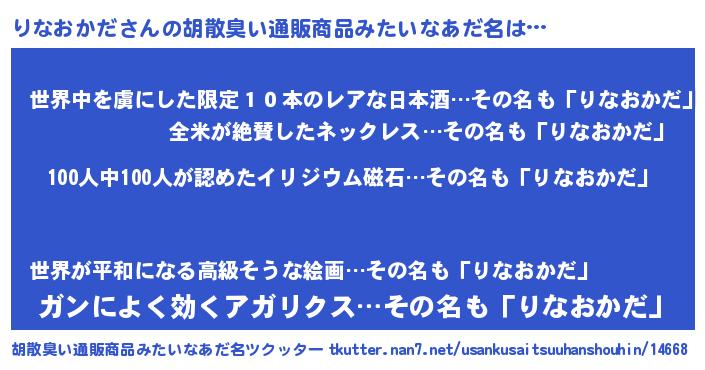 | ヘコむあだ名 | 『りなっ子』『豆乳』『りなにー』 |