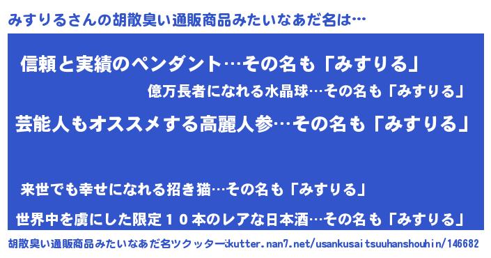 | 男性向けラノベタイトル風あだ名 | 『Re:みすりるから始める異世界生活』 |