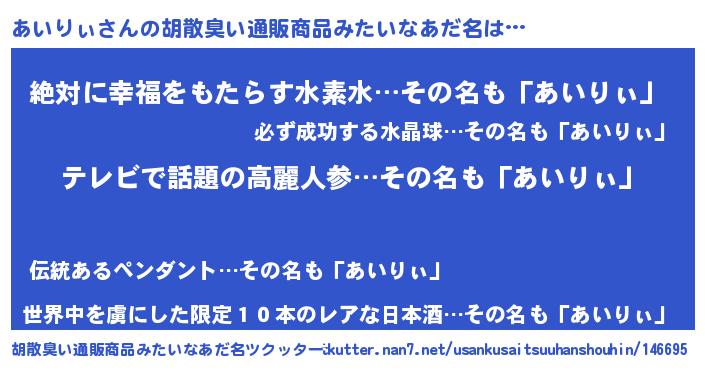| ヘコむあだ名 | 『あいりぃ(小並感)』『あいもー』 |